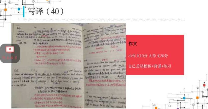 接下来,日常成绩优良和考研英语不错的黄钰从自身进行了英语学习的分享,首先从她的个人情况说起,接着针对学习考研英语从单词,阅读,写译一一做出了详细讲解,并针对考研英语的时间安排,做题顺序,心态,课程推荐等也做出来详细讲解。黄钰同学的英语经验分享针对性强,提供了更具体有效的复习备考方法,技巧和经验。
