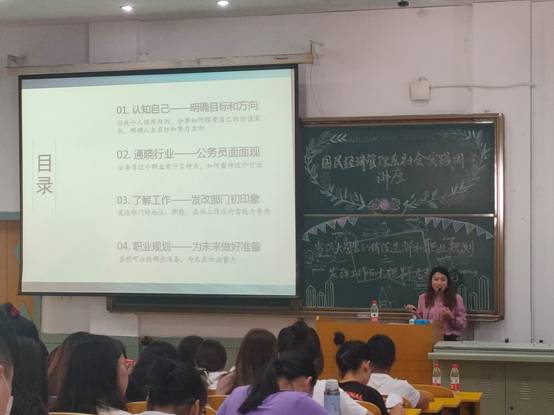 本次讲座气氛热烈而融洽,老师们精心准备,同学们积极参与,取得很大的成功。通过本次讲座,同学们更好地解决了在专业发展与未来就业方面存在的困惑,更多地了解了本专业报考公务员特别是进入发改委工作的要求。本次讲座为同学们指明了前进的方向,明确了发展的目标,激发了学习的斗志。