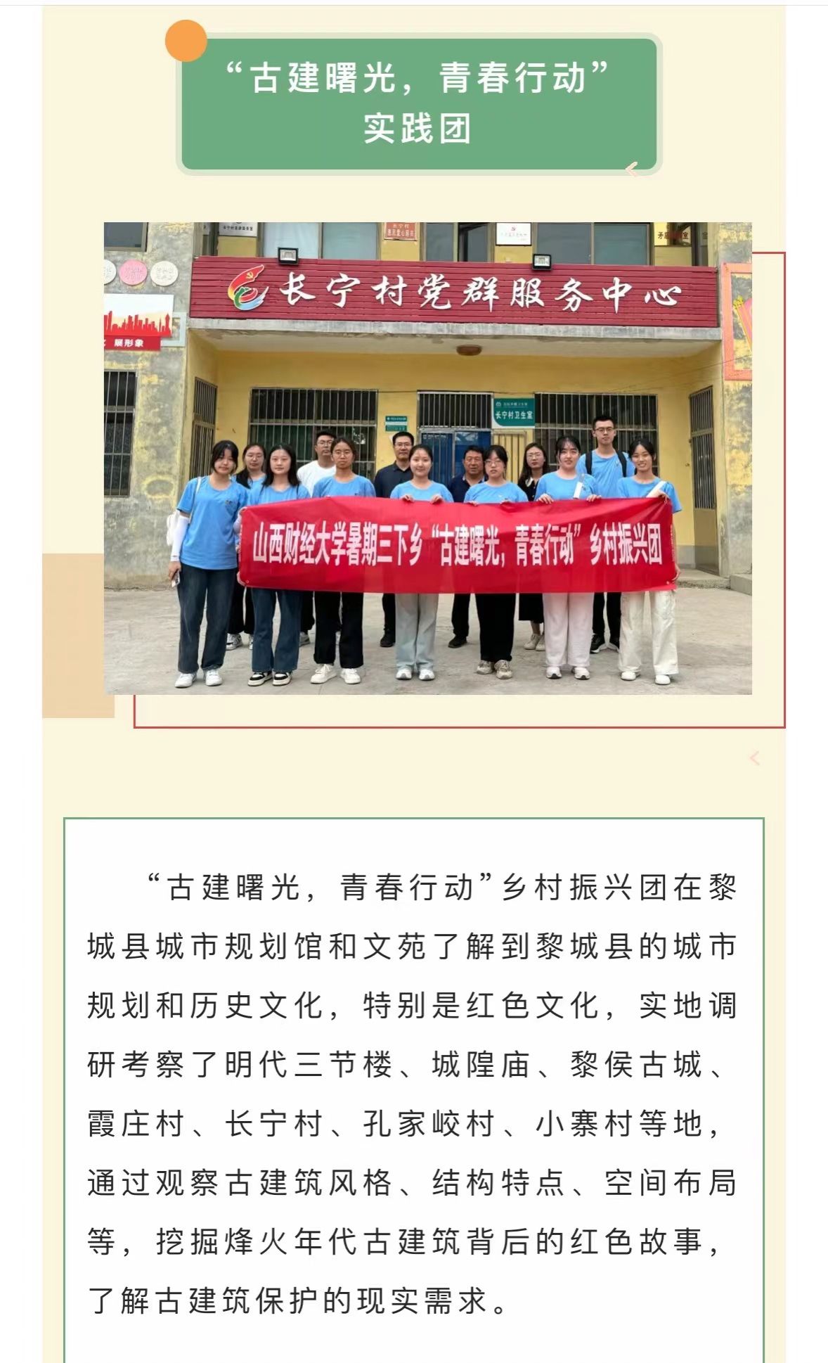 “古建曙光,青春行动”实践团