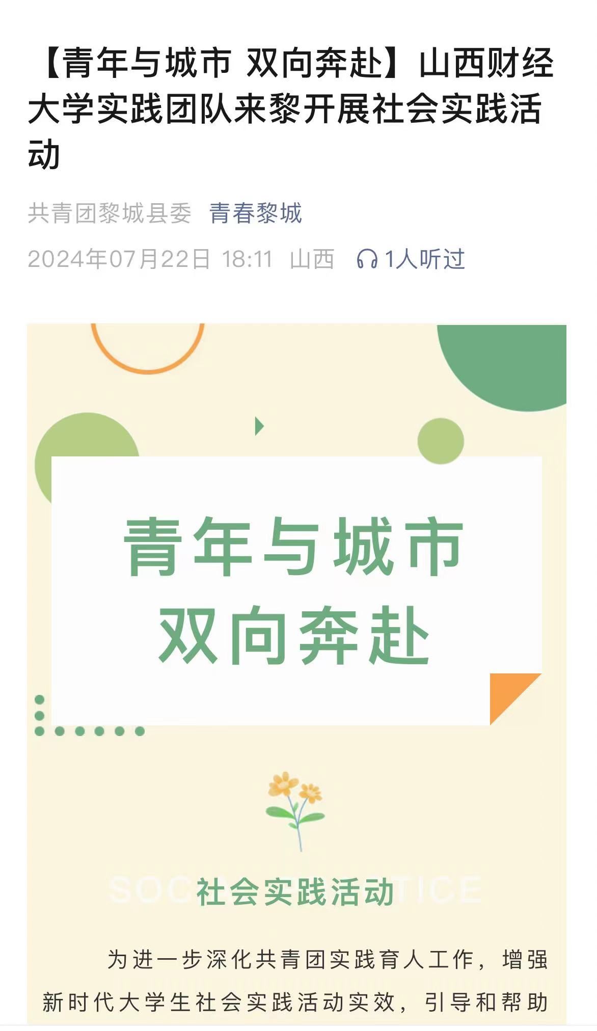 下一步,团县委将继续发挥服务青年、引领青年的桥梁纽带作用,用心用力做好牵线搭桥、服务保障等工作,吸引更多青年走进黎城、了解黎城、建设黎城,实现青年与黎城的双向奔赴。