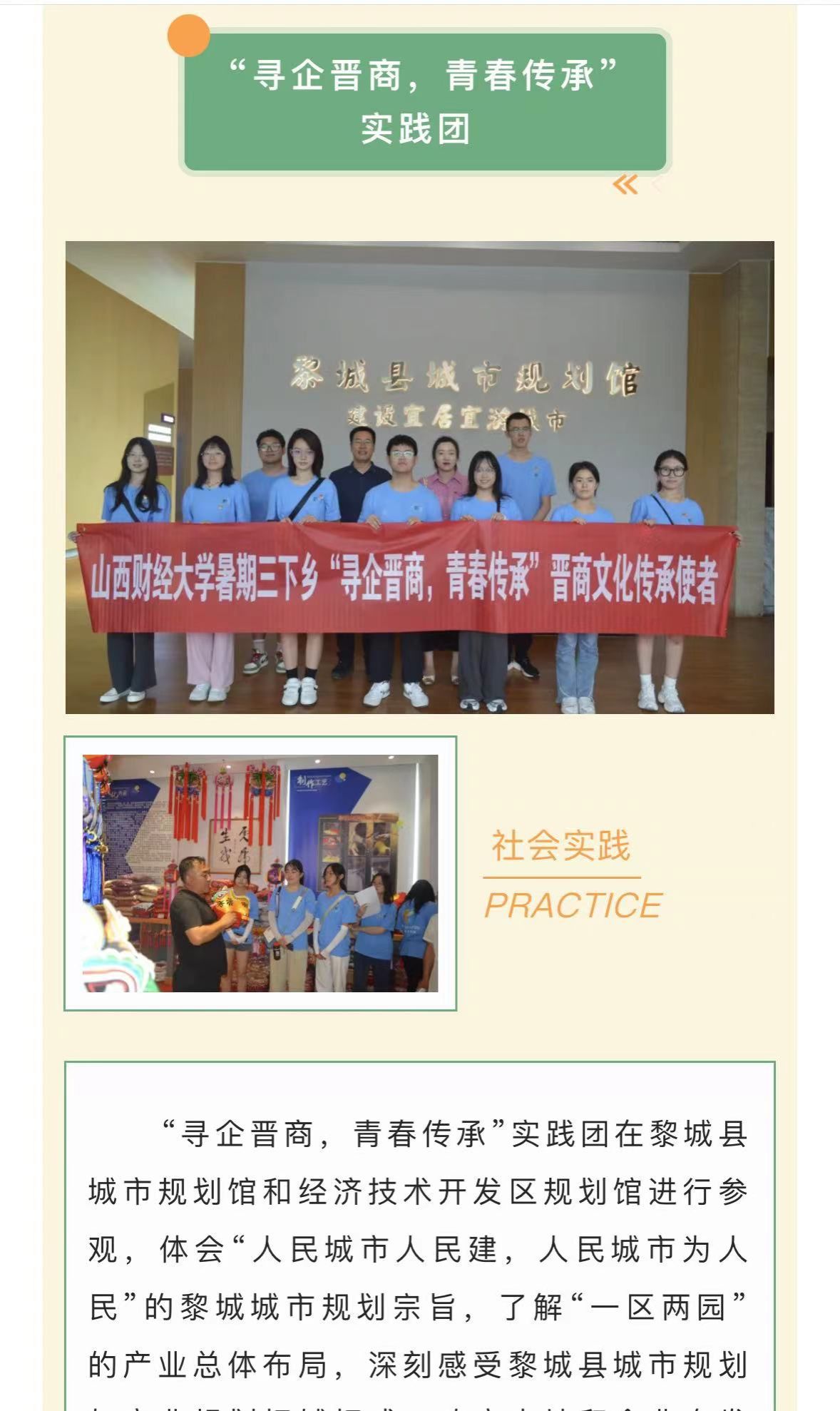 “寻企晋商,青春传承”实践团