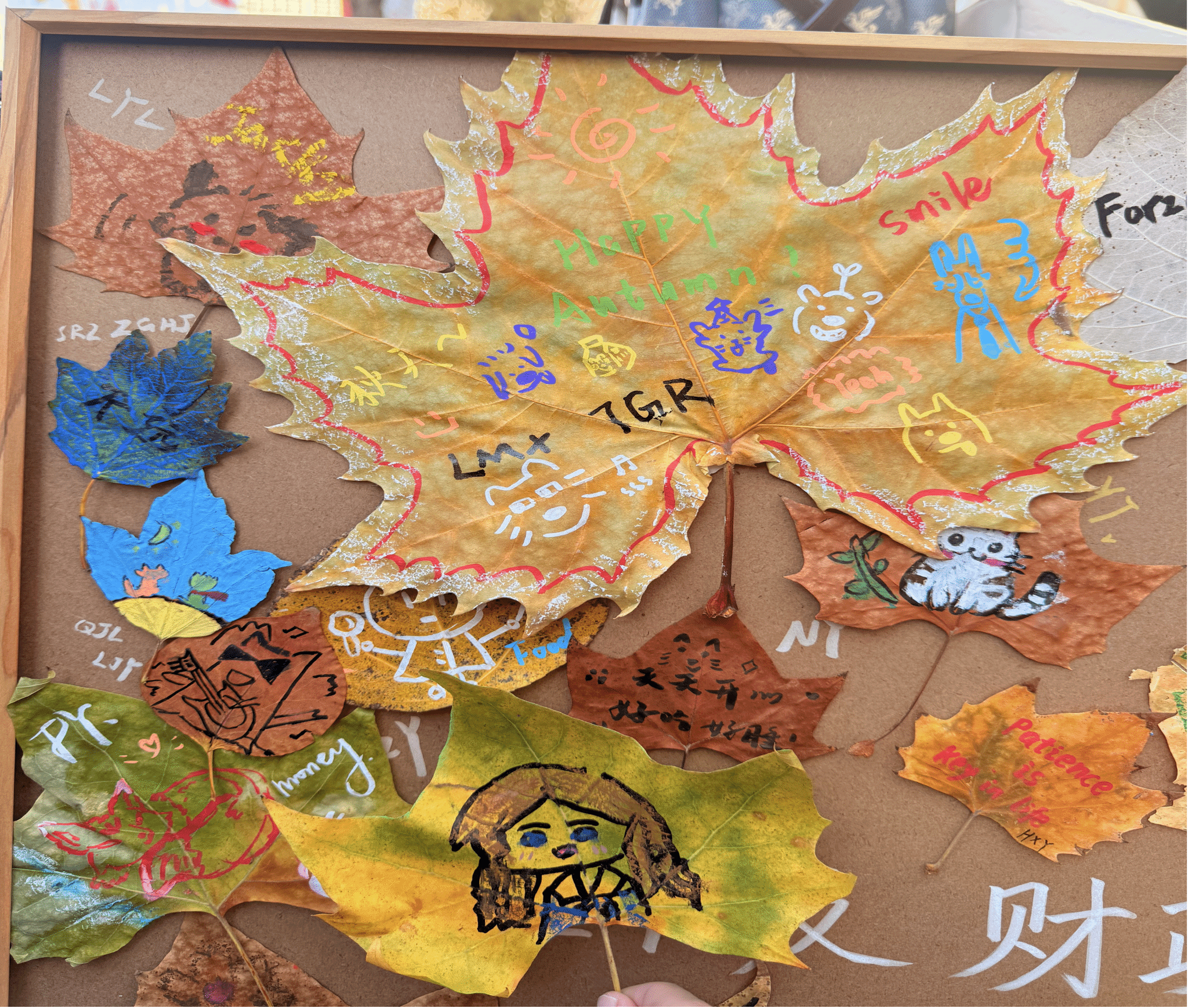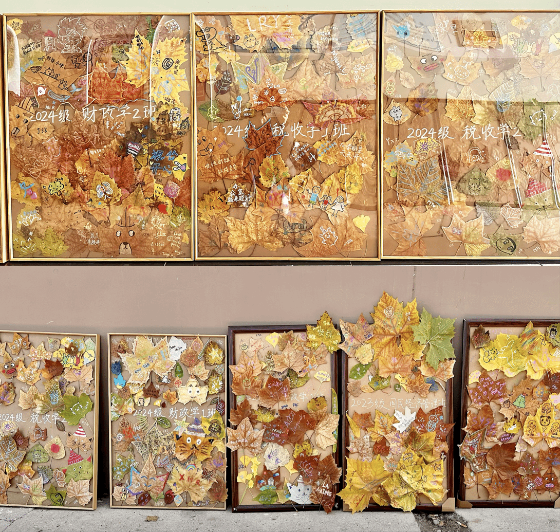 活动中,同学们利用学院准备的画具,在一片片叶子和一个个圆盘上挥洒创意、书写青春。活动既有以班为单位的树叶创作活动,也有体现个人心境的圆盘调色活动。期间,学院老师们走进学生当中,与同学们一起创作,在欢声笑语中形成了一道独属于学院的、充满生命力的“解压艺术墙”。